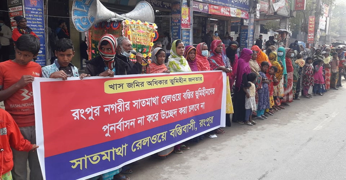 বক্তারা বলেন, স্বাধীনতা-পরবর্তী সময় থেকে এই ভূমিহীন, অসহায় ও হতদরিদ্র পরিবারগুলো রেলওয়ে-সংলগ্ন বস্তিতে জীবনের ঝুঁকি নিয়ে মানবেতর জীবন যাপন করছে। তাদের নিজস্ব কোনো ভিটেমাটি নাই। তারা দিন আনে দিন খায়। পুনর্বাসন ছাড়া উচ্ছেদ করা হলে তাদের পথে বসা ছাড়া কোনো উপায় থাকবে না।