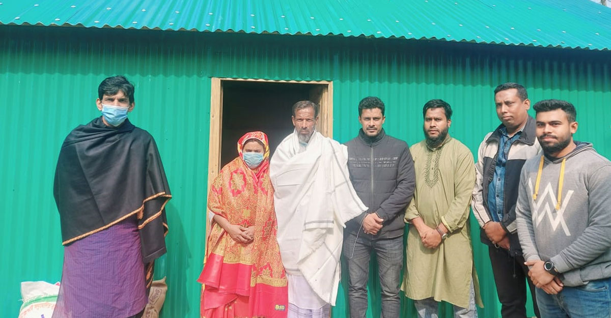 বিষয়টি নজরে আসে স্বেচ্ছাসেবী ও সমাজকর্মী মামুন বিশ্বাসের। এর পরিপ্রেক্ষিতে তিনি ফেসবুক বন্ধুদের সহযোগিতায় এই দম্পতিকে নতুন ঘর দেওয়ার জন্য সিদ্ধান্ত নেন। পাশাপাশি তাদের দেওয়া হয়েছে লেপ-তোশক, থাকার চৌকি, শীতের পোশাক, রান্নার জন্য হাঁড়ি-পাতিল, খাদ্যসামগ্রী ও কাঁচাবাজারসহ সাড়ে সাত হাজার টাকা।