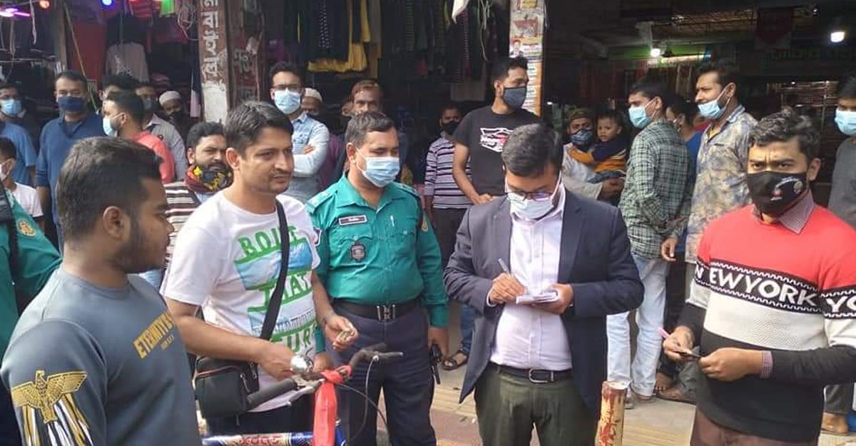 এদিকে করোনাভাইরাসের বিস্তার রোধে স্বাস্থ্যবিধি প্রতিপালন নিশ্চিতকরণে শনিবার খুলনা মহানগরীর বিভিন্ন স্থানে মোবাইল কোর্ট পরিচালিত হয়। মোবাইল কোর্ট পরিচালনা করেন জেলা প্রশাসনের এক্সিকিউটিভ ম্যাজিস্ট্রেট নয়ন কুমার রাজবংশী, আরিফুল ইসলাম ও দেবাশীষ বসাক। এ সময় মাস্ক না পরাসহ স্বাস্থ্যবিধি প্রতিপালনে ব্যত্যয় করায় ৩৪টি মামলায় ৩৪ জনকে ৮ হাজার ১৭০ টাকা জরিমানা করা হয়।