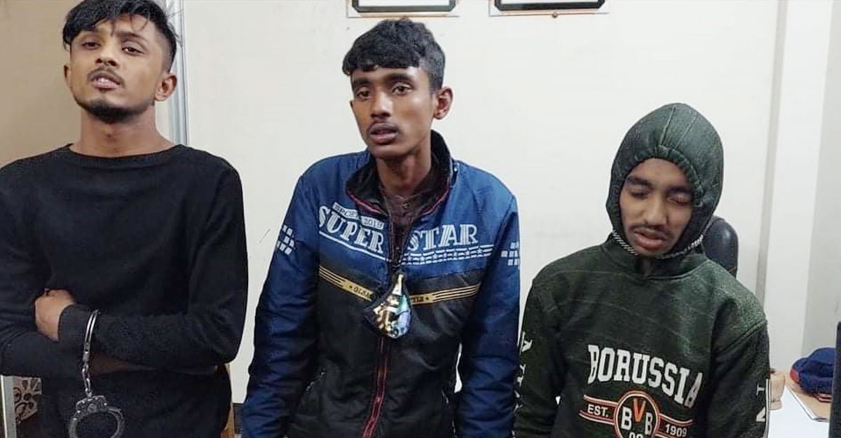 আটক ব্যক্তিরা হলেন দিনাজপুর জেলার পাবর্তীনগর থানার মশথপুর গ্রামের মৃত কাজল হোসেনের ছেলে ইয়াছিন (১৯), কিশোরগঞ্জ জেলার করিমগঞ্জ থানার দিগার হাওলা গ্রামের রুবেল মিয়ার ছেলে অন্তর (২০) ও ঝিনাইদাহ জেলার কালিগঞ্জ থানার মইশা হাটা গ্রামের তোতা মিয়ার ছেলে শাহিন (১৯)।