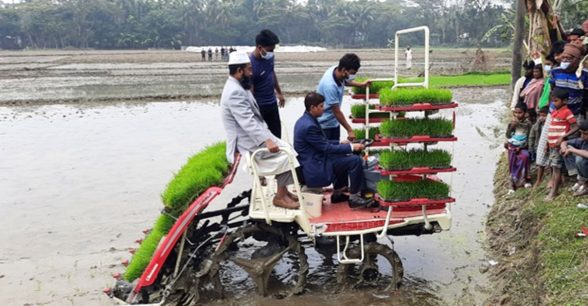 ভোলায় প্রথম ধানের চারা রোপণে রাইস ট্রান্সপ্ল্যান্ট