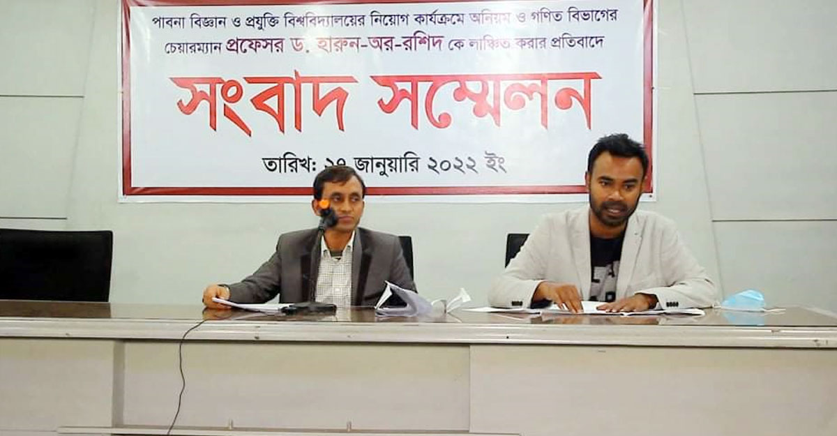 বৃহস্পতিবার (২৭ জানুয়ারি) বিকেলে পাবনা প্রেসক্লাবের ভিআইপি অডিটোরিয়ামে সংবাদ সম্মেলনে বিশ্ববিদ্যালয়ের গণিত বিভাগের চেয়ারম্যান প্রফেসর ড. হারুন-অর-রশিদ এ অভিযোগ করেন।