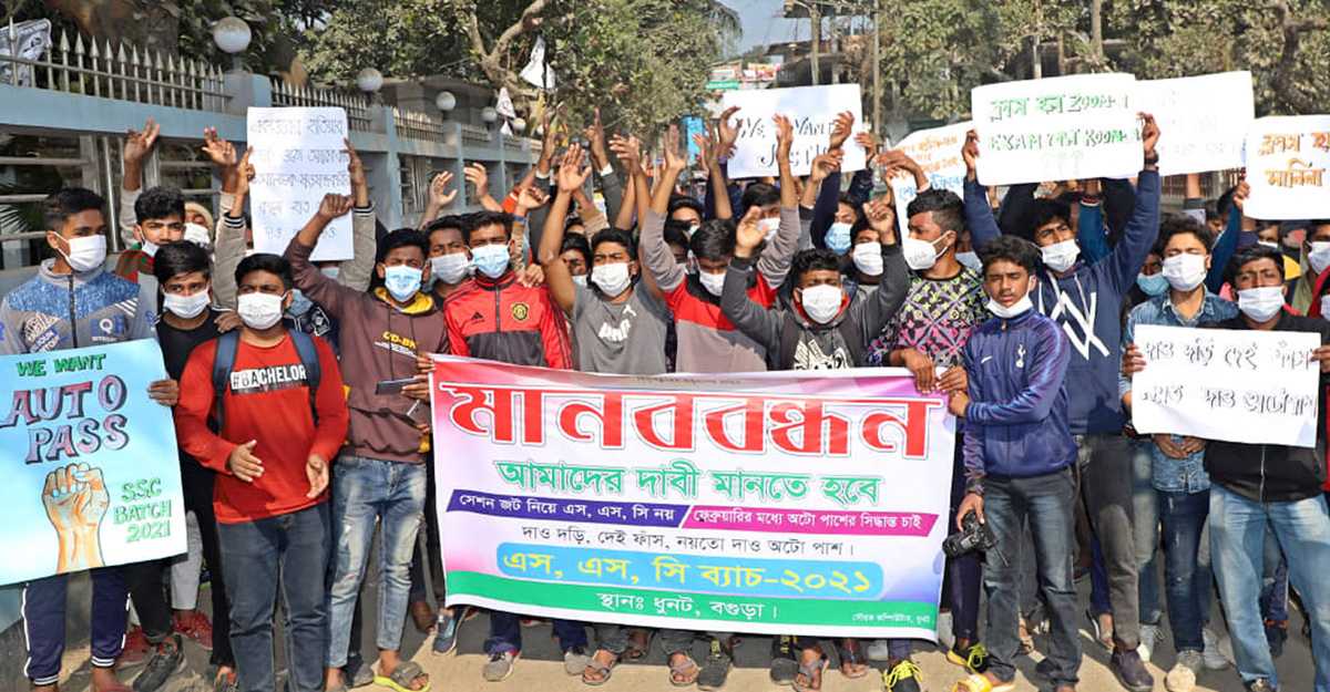 এসএসসি পরীক্ষায় অটো পাসের দাবিতে বিক্ষোভ