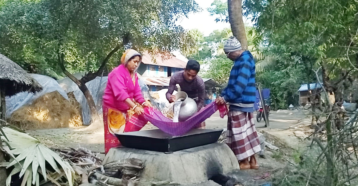 বরগুনায় গোলগাছের রস থেকে গুড় তৈরির ধুম