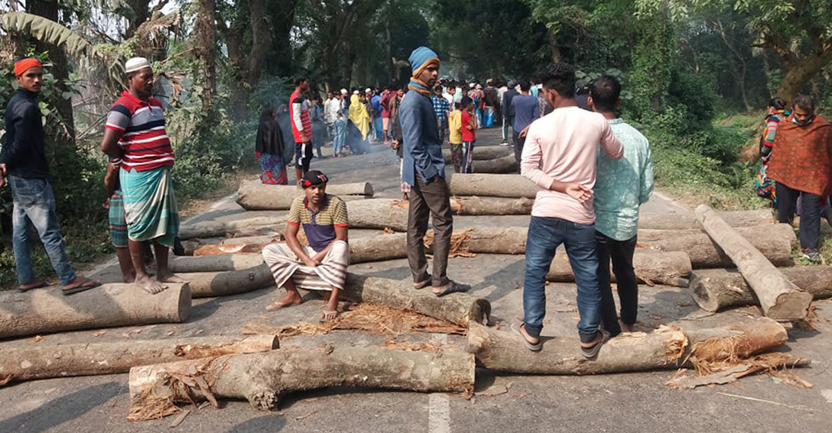 কালকিনিতে সড়কে দুজন নিহতের প্রতিবাদে গাছের গুঁড়ি ফেলে অবরোধ