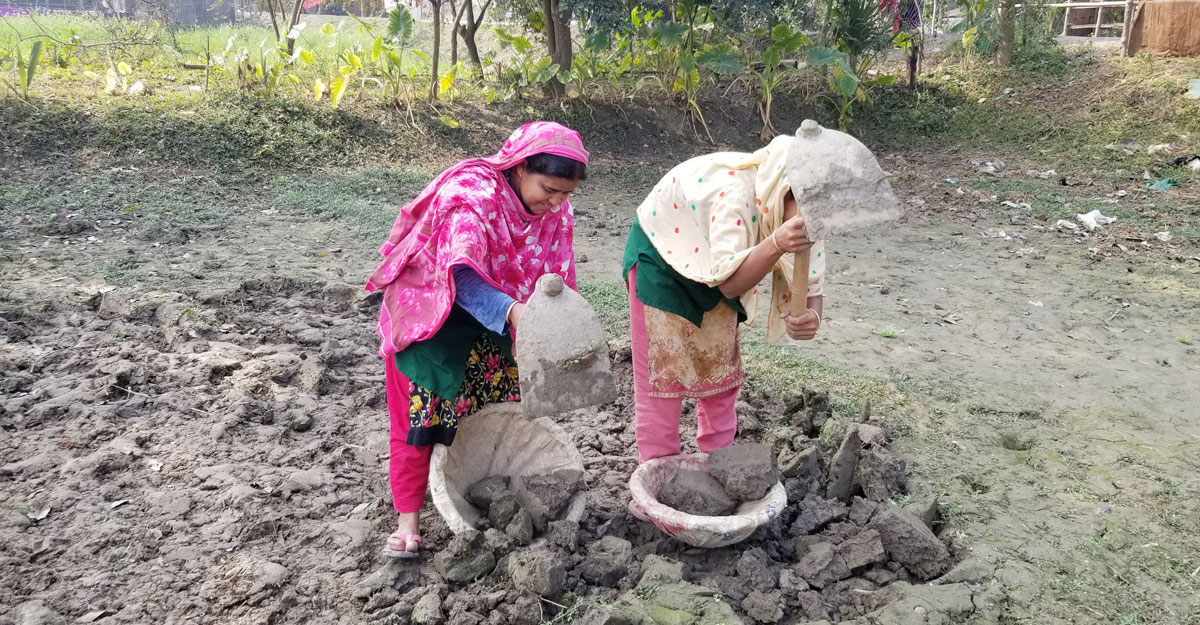 মাটি কেটে সংসারের চাকা ঘুরছে ইউপি সদস্য ববিতার