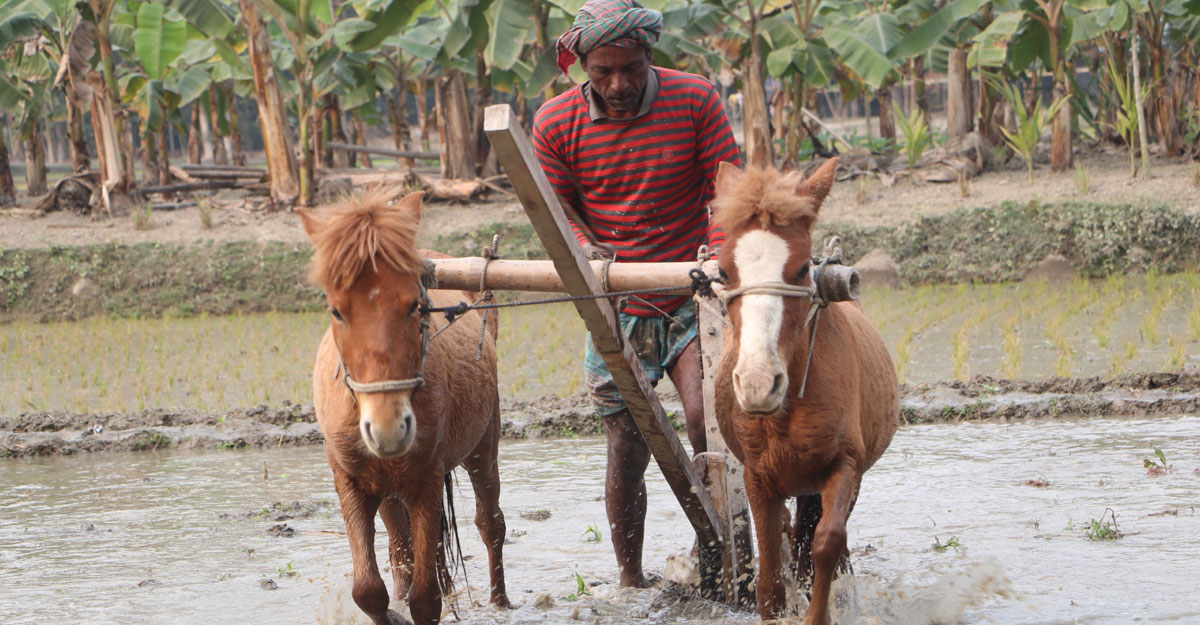 ডিজিটাল এই যুগে নানাভাবে হালচাষ করা হয়। ফলে গরু দিয়ে হালচাষ অনেকটাই বিলুপ্তির পথে। তবে গাইবান্ধার পলাশবাড়ী উপজেলার মোখলেছুর রহমান (৫০) নামে এক কৃষক ঘোড়া দিয়ে অন্যের জমি চাষ করে জীবিকা নির্বাহ করছেন।