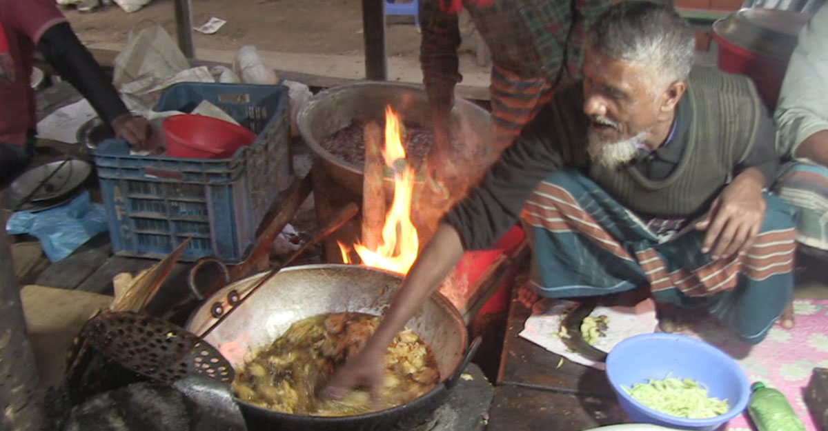 গরম তেলে হাত দিয়ে ডালপুরি ভাজেন লিয়াকত