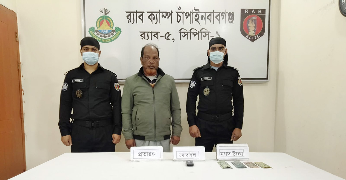 গতকাল শনিবার (৫ ফেব্রুয়ারি) দুপুরে র্যাব-৫, সিপিসি-১ চাঁপাইনবাবগঞ্জ ক্যাম্পের সদস্যরা সদর উপজেলার বালিয়াডাঙ্গা ইউনিয়নে অভিযান চালিয়ে শের মোহাম্মদকে আটক করেছে। এ সময় তার কাছ থেকে সেনাবাহিনীতে চাকরির একটি ভুয়া নিয়োগপত্র পাওয়া গেছে। র্যাবের পাঠানো প্রেস বিজ্ঞপ্তিতে এসব তথ্য নিশ্চিত করা হয়।
