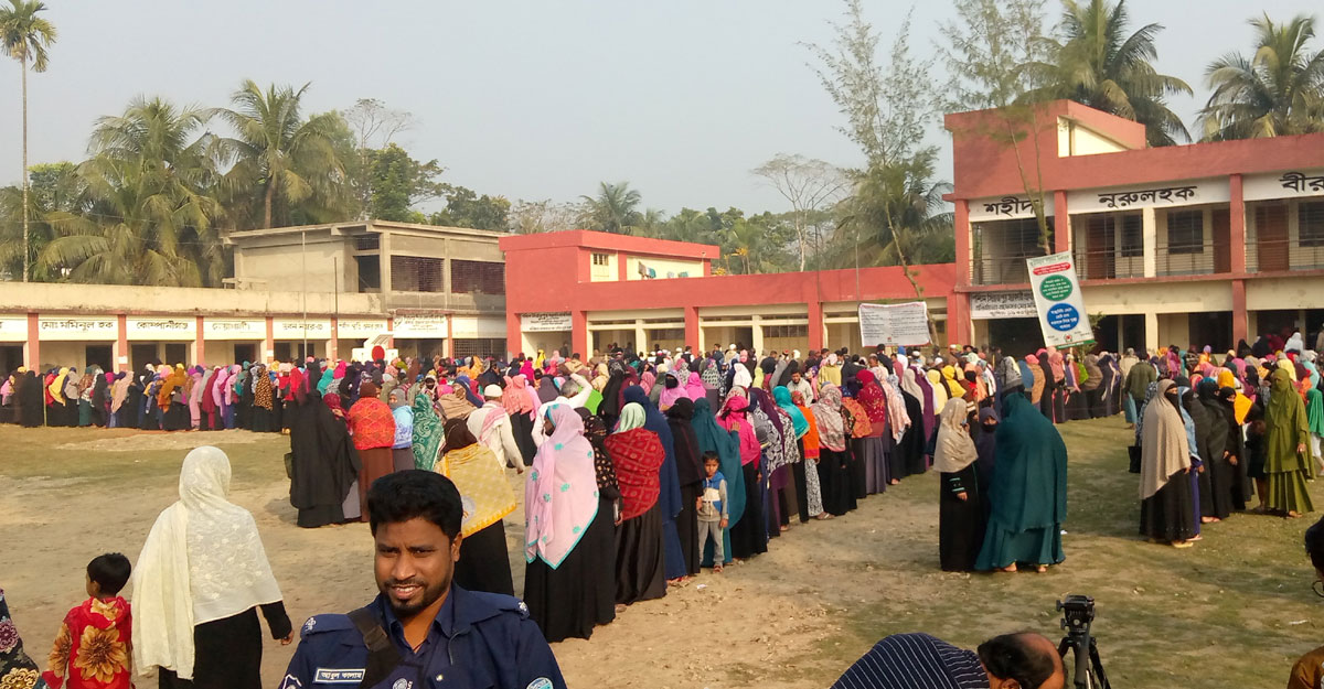 ভোটকেন্দ্রে নারী ভোটারের দীর্ঘ সারি