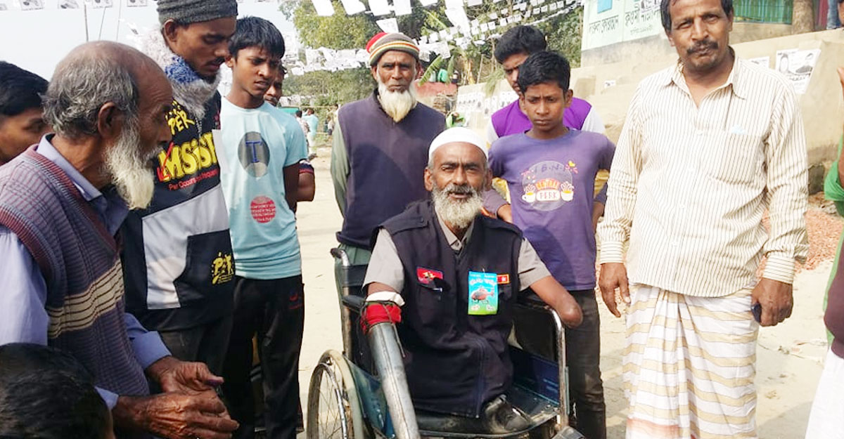 হাত-পা নেই বলে চলতে হয় হুইলচেয়ারে। সংসার চালান মানুষের সহায়তায়। কিশোরগঞ্জের ভৈরব রেলওয়ে স্টেশনের কাছে একটি খুরপি ঘরে থাকেন তিনি। ভোট দিতে এসেছেন জেলার হাওর উপজেলা ইটনার এলাংজুরী ইউনিয়নের ছিলনী সরকারি প্রাথমিক বিদ্যালয় ভোটকেন্দ্রে। ভাতিজার সহায়তায় ভোট দিতে পেরে বেজায় খুশি তিনি। বলছিলাম মো. সিরাজ মিয়ার (৬০) কথা। আজ সপ্তম ধাপের ইউপি নির্বাচনে ভোট দিয়েছেন তিনি।