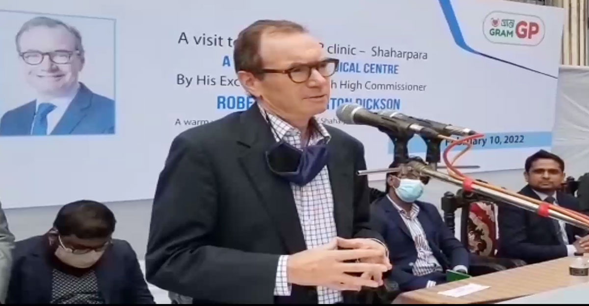 এর আগে, বেলা ১১টায় গ্রাম-এর তত্ত্বাবধানে পরিচালিত মেডিকেল সেন্টার পরিদর্শন করেন রবার্ট চ্যাটার্টন ডিকসন। এ সময় তিনি উপস্থিত রোগীদের সঙ্গে কথা বলেন। তাদের খোঁজ-খবর নেন। এ সময় তার সঙ্গে আরও উপস্থিত ছিলেন ভাইস কনস্যুলার রাহিন মঈন চৌধুরী, ম্যানেজার আহসান সাদিক, মিডিয়া অফিসার নারায়ণ দেবনাথ প্রমুখ।