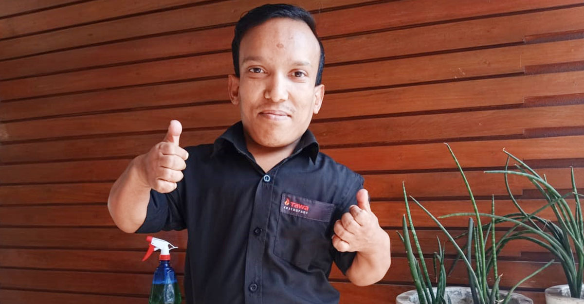 রেস্টুরেন্টে তিনি অভ্যর্থনা জানানো ও পরিচ্ছন্নতার কাজ করে থাকেন। মাস শেষে যা বেতন পান, তা দিয়েই চলে পাঁচজনের সংসার। স্বপ্ন দেখেন, তার ছেলে মাহাদী লেখাপড়া করে অনেক বড় হবে। দৈহিক কাঠামো যেহেতু ক্ষুদ্রাকৃতির, সেও জানে স্বাভাবিক মানুষের অয়ুষ্কালের সমান তিনি বাঁচবেন না। যে কারণে শেষ বয়সে যেন সামাজিক প্রতিহিংসার শিকার না হতে হয়, সে জন্য সন্তানকে মানুষের মতো মানুষ করতে চান। এ জন্য কারও সাহায্য চান না, চান সহায়তার মনোভাব।