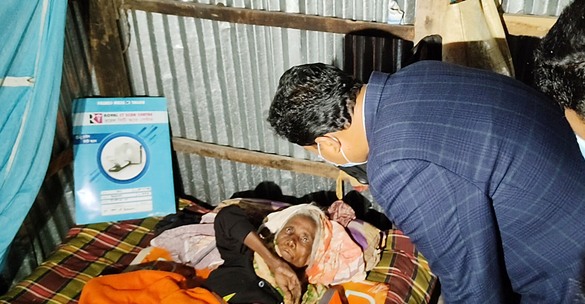 অসহায় সাবিত্রি কর্মকারের শয্যাপাশে ডিসি, দিলেন অর্থসহায়তা