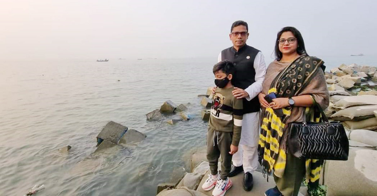 শুক্রবার (১১ ফেব্রুয়ারি) বিকেলে পরিবার নিয়ে তিন নদীর মোহনায় ঘুরতে যান তিনি।