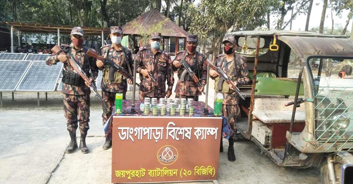 জয়পুরহাট ২০ বিজিবি অধিনায়ক লে. কর্নেল ফেরদৌস হাসান টিটু বলেন, সীমান্ত থেকে অটোরিকশায় রাখা এয়ার রাইফেলের গুলি ও স্ট্যান্ড জব্দ করা হয়। যার আনুমানিক মূল্য ৮১ লাখ ৬০ হাজার টাকা।
