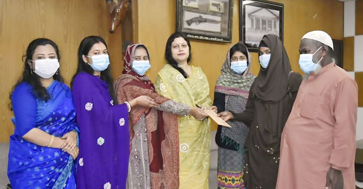 অসহায় তহুরার স্বপ্নপূরণে এবার তার পাশে সহযোগিতার হাত বাড়িয়ে দিয়েছে রংপুর জেলা পুলিশ নারী কল্যাণ সমিতি (পুনাক)। শনিবার (১২ ফেব্রুয়ারি) দুপুরে রংপুর জেলা অফিসার্স মেসে তহুরার কলেজে ভর্তিসহ বই কেনা ও পড়াশুনার খরচের জন্য ১০ হাজার টাকা দিয়েছে পুনাক।