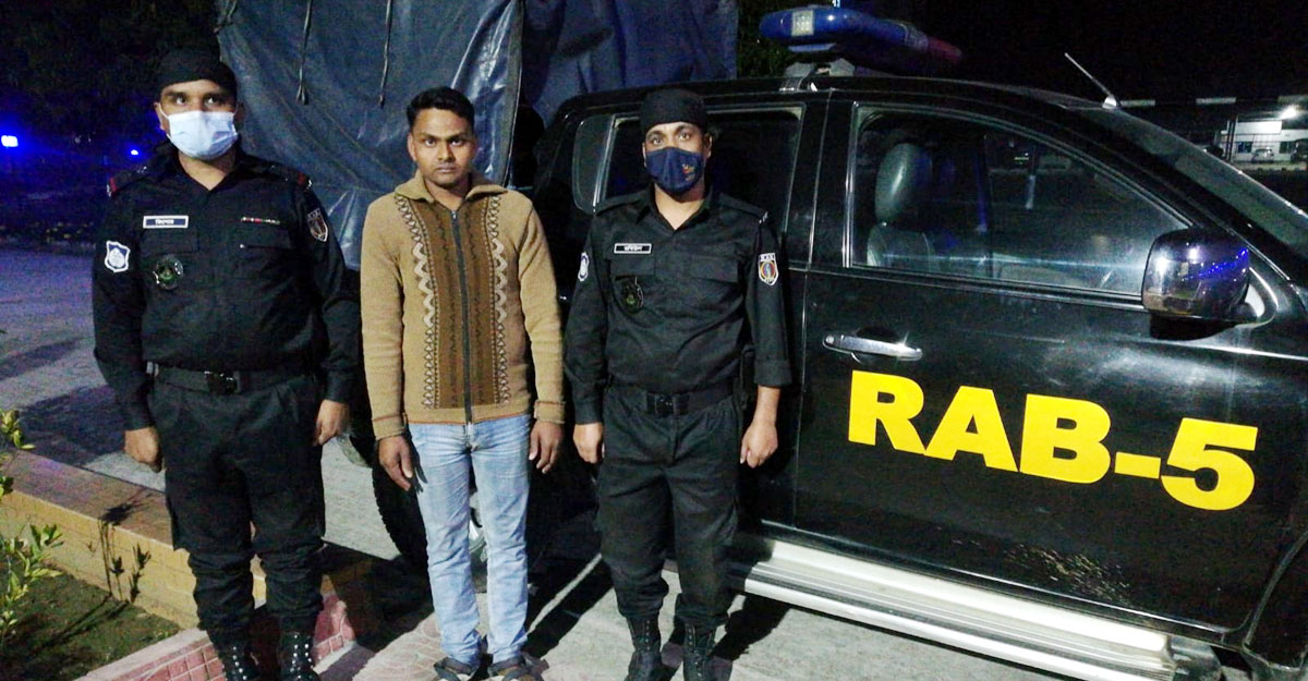 র্যাব জানায়, গোয়েন্দা তথ্যের ভিত্তিতে র্যাব-৫, রাজশাহীর সিপিএসসি, মোল্লাপাড়া ক্যাম্পের একটি অপারেশন দল জানতে পারে, বরেন্দ্র মোড়ের জননী এক্সপ্রেস পার্সেল সার্ভিস অফিসের পশ্চিম পাশের গেটের সামনে পাকা রাস্তার উপর এক ব্যক্তি মাদকদ্রব্যসহ অবস্থান করছে। এমন তথ্যের ভিত্তিতে তাকে আটক করে র্যাব। এ সময় একটি প্লাস্টিকের ব্যাগে এসব জাল ভারতীয় রুপিসহ তাকে আটক করা হয়।