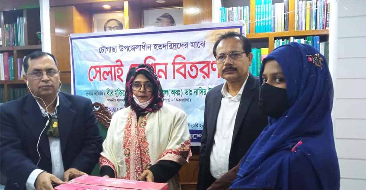 জানা যায়, (১৬ ফেব্রুয়ারি) বুধবার দুপুরে উপজেলা নির্বাহী কর্মকর্তার কার্যালয়ে জেলা পরিষদের সদস্য শায়লা জেসমিনের উদ্যোগ ও উপস্থিতিতে দরিদ্রদের মাঝে সেলাই মেশিন বিতরণ করা হয়। ওই অনুষ্ঠানে প্রধান অতিথি ছিলেন যশোর-২ আসনের সংসদ সদস্য মেজর জেনারেল (অব.) অধ্যাপক ডা. নাসির উদ্দিন। এ সময় চৌগাছা উপজেলা পরিষদ চেয়ারম্যান ড. মোস্তানিছুর রহমান উপস্থিত ছিলেন।