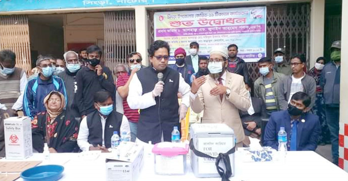নাটোরের সিংড়া উপজেলা স্বাস্থ্য কমপ্লেক্সে করোনার টিকা প্রদান কার্যক্রম উদ্বোধনকালে প্রতিমন্ত্রী পলক