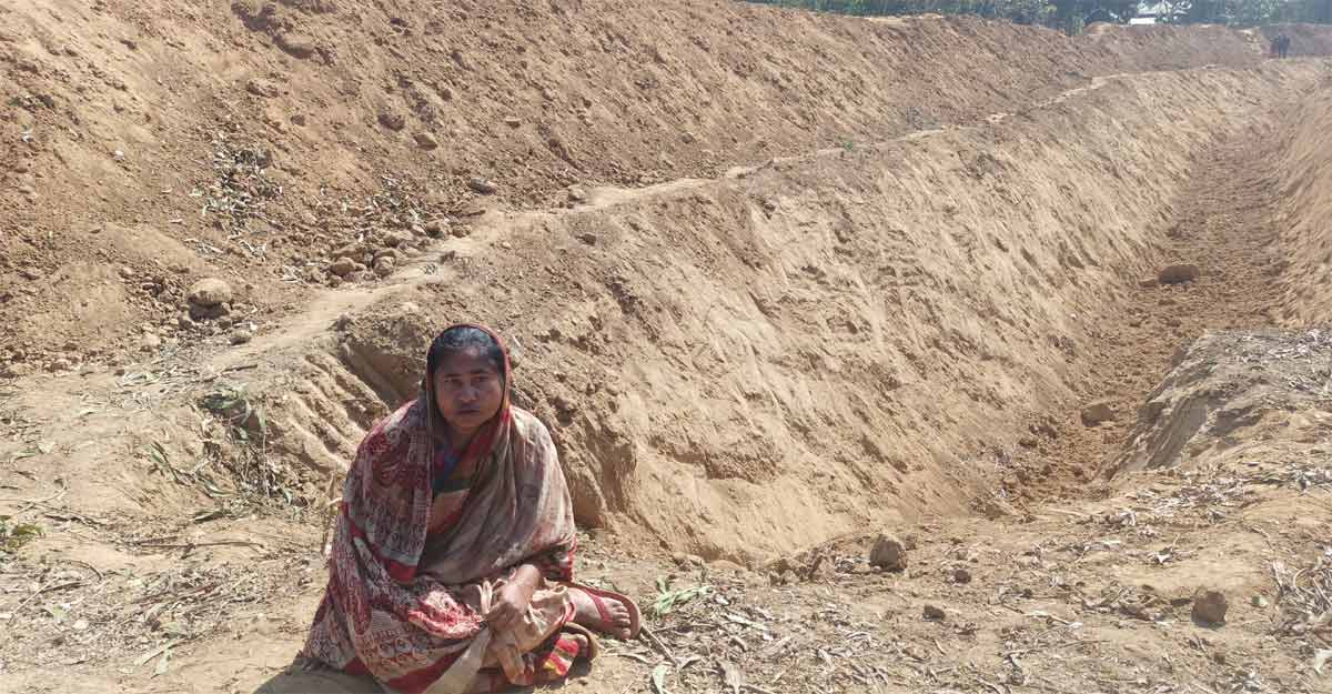 ভুক্তভোগী নেকজান বেগম বলেন, আমার স্বামী-সংসার কিছু নাই। দীর্ঘদিন ঢাকার বাসা-বাড়িতে কাম কইরা কিছু টাকা জমায় ছিলাম। সে টাকা দিয়ে কিছু জমি কিনেছিলাম। এই জমিতে ফসল ফলাইতাম। ফসল বিক্রির টাকা দিয়ে সংসার চালাইতাম। এখন আমার পুরা জমিতে খাল খনন করা হয়েছে। কত মানুষের পায়ে ধরলাম। কেউ আমার কথা শুনল না। আমার কেনা জমিতে তারা খাল খনন করল। অথচ আমারে কোনো প্রকার ক্ষতিপূরণ দিল না।