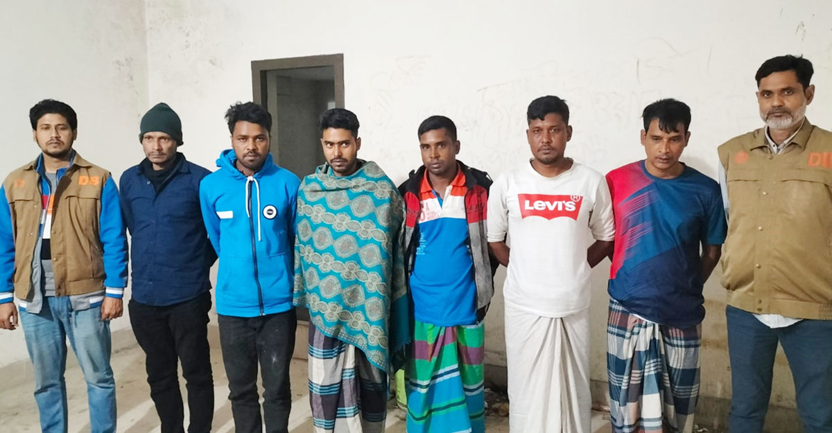 গ্রেফতাররা হলেন- জেলার হরিরামপুর উপজেলার পূর্ব খলিলপুর গ্রামের রাজীব হোসেন (৩৯), সদর উপজেলার লেমুবাড়ি গ্রামের মাসুদ রানা (৩০), পুটাইল গ্রামের শহিদুল ইসলাম (৪২) ও মুনসের আলী (৩৪), বেউথা গ্রামের রিপন মিয়া (৩১) এবং পশ্চিম দাশড়া গ্রামের সুজন মিয়া (৪১)।