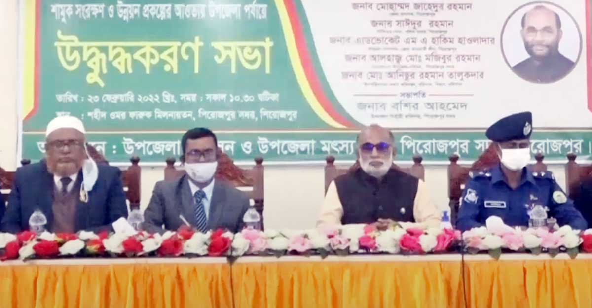 সকাল সাড়ে ১০টায় পিরোজপুর সদর উপজেলা পরিষদ অডিটরিয়ামে উপজেলা নির্বাহী কর্মকর্তা মো. বশির আহমেদের সভাপতিত্বে অনুষ্ঠিত আলোচনা সভায় অন্যান্যের মধ্যে বক্তব্য রাখেন- পুলিশ সুপার মো. সাঈদুর রহমান, অতিরিক্ত জেলা প্রশাসক (রাজস্ব) মো. হুমায়ুন কবির, জেলা মৎস্য অধিদপ্তরের বরিশাল বিভাগীয় উপ-পরিচালক মো. আনিচুর রহমান তালুকদার।
