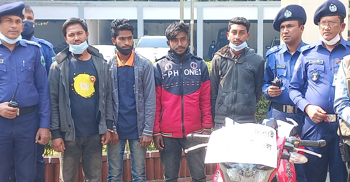 গ্রেপ্তাররা হলেন- জয়পুরহাটের পাঁচবিবি পৌরসভার ফকিরপাড়া এলাকার শহিদুল ইসলামের ছেলে তুহিন হাসান (২১), একই এলাকার আতোয়ার হোসেনের ছেলে নাদিম হাসান (১৯), মুন্সিপাড়া এলাকার আতিকুজ্জামানের ছেলে লাবিব হাসান (২০) ও ফকিরপাড়ার আমজাদ হোসেনের ছেলে মো. শাওন (২৫)।
