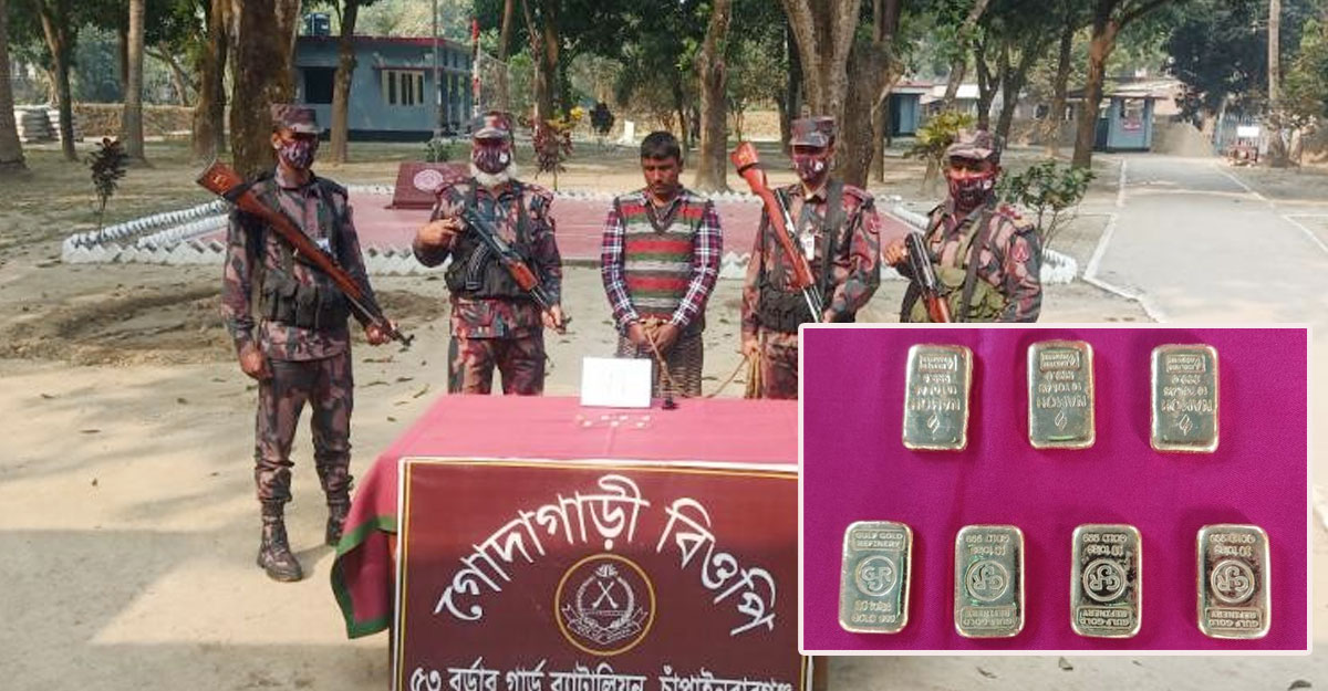 আটক মুক্তার হোসেন চাঁপাইনবাবগঞ্জ সদর উপজেলার চররানিচক-বাগচর গ্রামের মৃত সানাউল্লাহর ছেলে। জব্দকৃত সাতটি স্বর্ণের বারে ৭০ ভরি স্বর্ণ রয়েছে। যার আনুমানিক মূল্য ৫২ লাখ ৫০ হাজার টাকা।