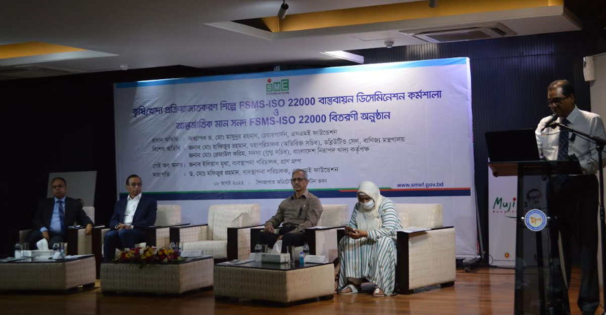 নিরাপদ পণ্য উৎপাদন, সংরক্ষণ, সরবরাহ ও বিপণন সংশ্লিষ্ট আটটি প্রতিষ্ঠান আইএসও-২২০০০ সনদ পেয়েছে। এসএমই ফাউন্ডেশনের সহায়তায় এ সনদ অর্জন করে প্রতিষ্ঠানগুলো।