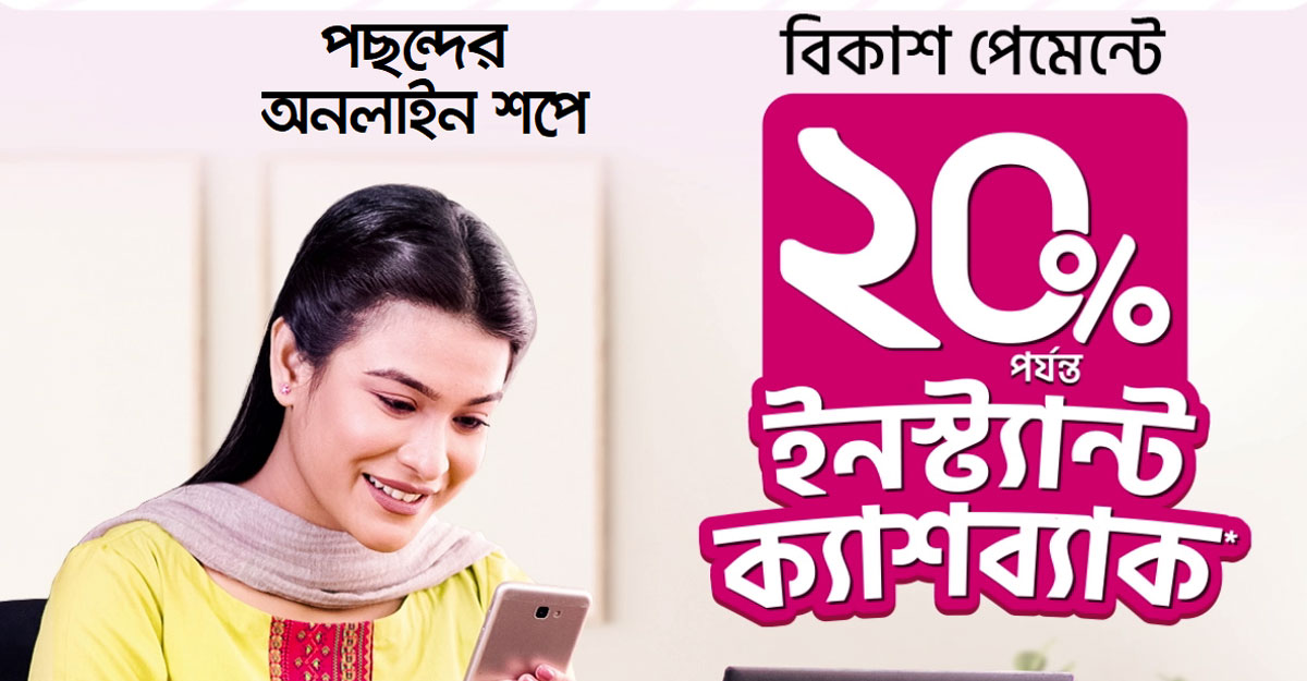 অনলাইন কেনাকাটায় বিকাশ পেমেন্টে ইনস্ট্যান্ট ক্যাশব্যাক