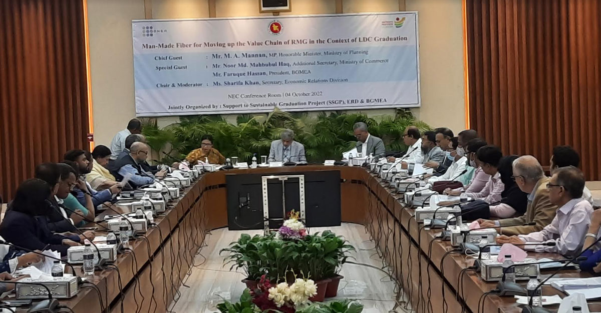 মঙ্গলবার (৪ অক্টোবর) রাজধানীর শেরেবাংলা নগরে পরিকল্পনা মন্ত্রণালয়ের এনইসি সম্মেলন কক্ষে অনুষ্ঠিত ‘ম্যান মেড ফাইবার ফর মুভিং আপ দ্য ভ্যালু চেইন অব আরএমজি ইন দ্য কনটেস্ট অব এলডিসি গ্ৰ্যাজুয়েশন’ শীর্ষক আলোচনা সভা শেষে সাংবাদিকদের এসব কথা বলেন তিনি।