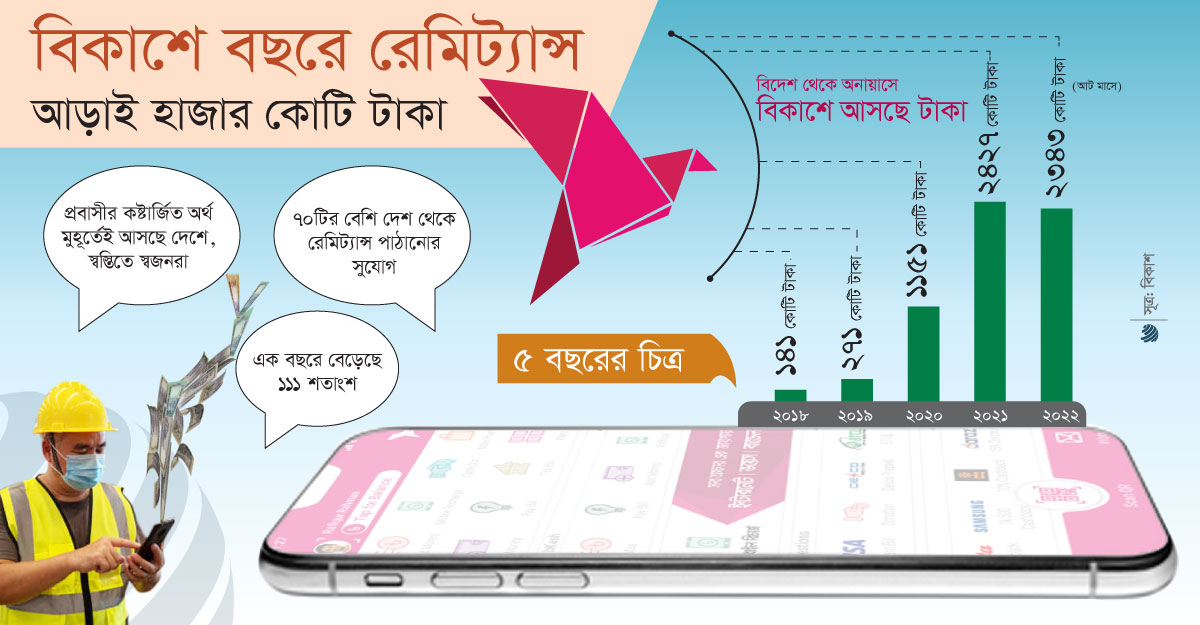 বিকাশে বছরে রেমিট্যান্স আড়াই হাজার কোটি টাকা