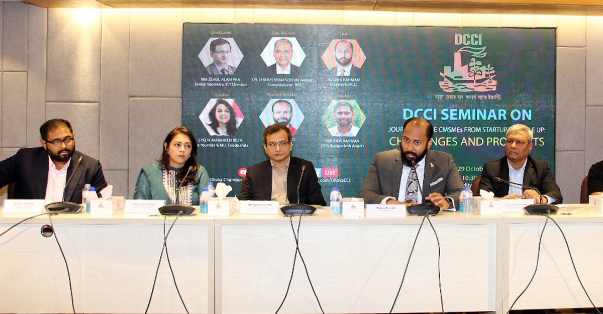 শনিবার (২৯ অক্টোবর) ডিসিসিআই অডিটোরিয়ামে আয়োজিত ঢাকা চেম্বার অব কমার্স অ্যান্ড ইন্ডাস্ট্রি (ডিসিসিআই) আয়োজিত ‘সিএমএসএমই স্টার্টআপদের সফলতার পথে প্রতিবন্ধকতা ও সম্ভাবনা’ শীর্ষক সেমিনার বক্তারা এসব তথ্য উপস্থাপন করেন।
