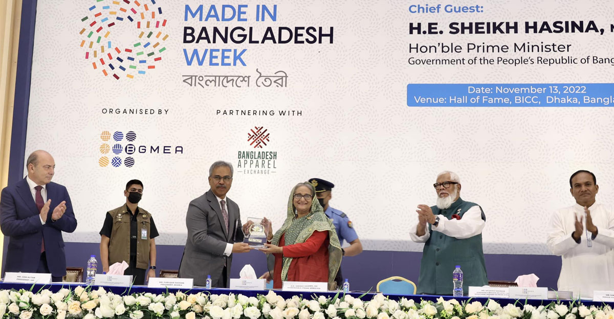 অনুষ্ঠানে চার ক্যাটাগরিতে চার ব্যক্তিকে পুরস্কৃত করে বিজিএমইএ। প্রধানমন্ত্রী বিজয়ীদের হাতে ক্রেস্ট তুলে দেন। পুরস্কারপ্রাপ্তরা হলেন- রঞ্জন মাহতানি, বাবু অমল পোদ্দার, এস এম খালেদ এবং শাহদাত হোসেন।