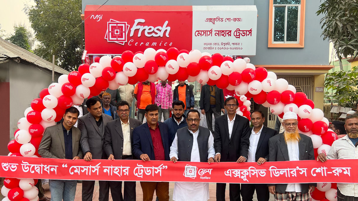 ফ্রেশ সিরামিকস তাদের বিপণনের পরিধি প্রতিনিয়ত বিস্তৃত করে যাচ্ছে নান্দনিক ডিজাইন ও গুণগতমানের টাইলসের নিশ্চয়তা নিয়ে। এ লক্ষ্যে ঈশ্বরদী এলাকার কাস্টমারদের সুবিধার কথা বিবেচনা করে গত ১৫ জানুয়ারি ঈশ্বরদীর কলেজ রোডে ‘মেসার্স নাহার ট্রেডার্স’-এর এক্সক্লুসিভ ডিলার শোরুম উদ্বোধন করা হয়েছে।