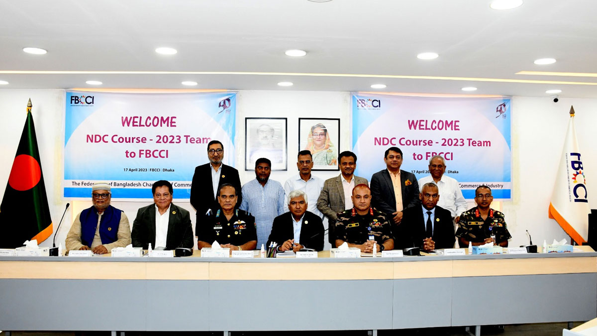 সোমবার ব্যবসায়ীদের শীর্ষ সংগঠন দি ফেডারেশন অব বাংলাদেশ চেম্বার্স অব কমার্স অ্যান্ড ইন্ডাস্ট্রি (এফবিসিসিআই) পরিদর্শন করেছে ন্যাশনাল ডিফেন্স কলেজ (এনডিসি) কোর্সের একটি উচ্চপর্যায়ের প্রতিনিধি দল। এ সময় মতবিনিময়কালে এফবিসিসিআই সভাপতি এ কথা বলেন।