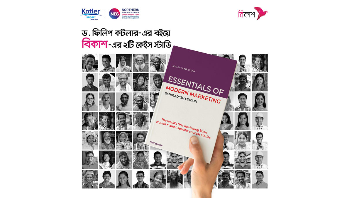 বিশ্বখ্যাত মার্কেটিং গুরু ড. ফিলিপ কটলার-এর লেখা ‘অ্যাসেনশিয়ালস অব মডার্ন মার্কেটিং’ বইয়ের স্থানীয় সংস্করণে দেশের সবচেয়ে বড় মোবাইল আর্থিক সেবাদানকারী প্রতিষ্ঠান বিকাশ-এর দুইটি কেস স্টাডি প্রকাশ করা হয়েছে। বিশ্বজুড়ে মার্কেটিং পেশার জন্য অবশ্য-পাঠ্য এ বইয়ে ‘বিকাশ: বাংলাদেশ’স এমএফএস স্টোরি’ ও ‘বিকাশ অ্যাপ, এ হাউজহোল্ড টুল’ কেস স্টাডি দুইটি বিশেষ করে নতুন প্রজন্মের মার্কেটিং অনুরাগীদের এ পেশার প্রতি আরও বেশি অনুপ্রাণিত করে তুলবে বলে মনে করেন লেখক-প্রকাশকরা।