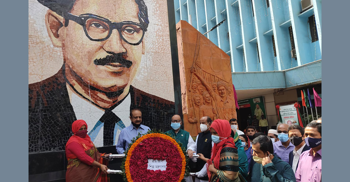 শুক্রবার (২৬ মার্চ) স্বাধীনতার সুবর্ণজয়ন্তী ও জাতীয় দিবস উপলক্ষে সকালে শিল্পমন্ত্রী, প্রতিমন্ত্রী, শিল্প সচিব, বিসিক চেয়ারম্যান, ও শিল্প মন্ত্রণালয়ের আওতাধীন দফতর সংস্থার প্রধানরা শিল্প মন্ত্রণালয় প্রাঙ্গণে স্থাপিত জাতির পিতার ম্যূরালে ফুল দিয়ে শ্রদ্ধা নিবেদন করেন।