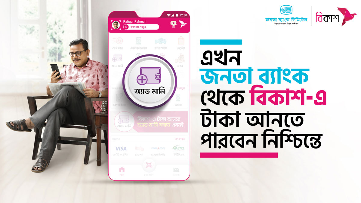 এখন থেকে জনতা ব্যাংকের গ্রাহকরাও ‘অ্যাড মানি’ করতে পারছেন বিকাশে