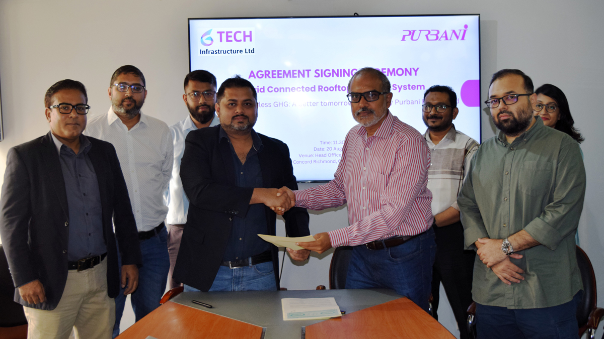 রুফটপ সোলার পাওয়ার সিস্টেম স্থাপনের জন্য জিটেক ইনফ্রাকচার লিমিটেডের সঙ্গে একটি চুক্তি স্বাক্ষর করেছে পূর্বাণী গ্রুপ। রোববার (২০ আগস্ট) রাজধানীর গুলশানে পূর্বাণী গ্রুপের প্রধান কার্যালয়ে এ চুক্তি স্বাক্ষরিত হয়।
