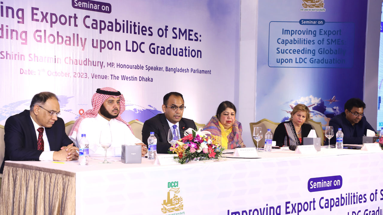 শনিবার (৭ অক্টোবর) রাজধানীর একটি হোটেলে অনুষ্ঠিত ‘এসএমইদের রপ্তানির সক্ষমতা বৃদ্ধি : এলডিসি উত্তরণ পরবর্তী বৈশ্বিক চ্যালেঞ্জ মোকাবিলা’ শীর্ষক সেমিনারে বক্তারা এ কথা বলেন।