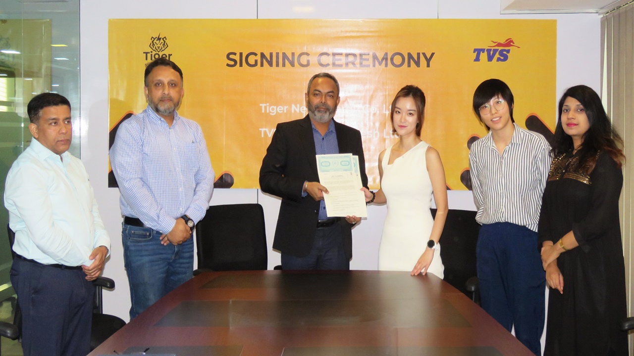 বৃহস্পতিবার (১৬ নভেম্বর) টিভিএস'র প্রধান কার্যালয়ে অনুষ্ঠিত এই চুক্তি স্বাক্ষর অনুষ্ঠানে উপস্থিত ছিলেন টাইগার নিউ এনার্জির সিইও নিকোল মাও, টিভিএস অটো বাংলাদেশের সিইও বিপ্লব কুমার রায় ও দুই প্রতিষ্ঠানের উচ্চপদস্থ কর্মকর্তারা।