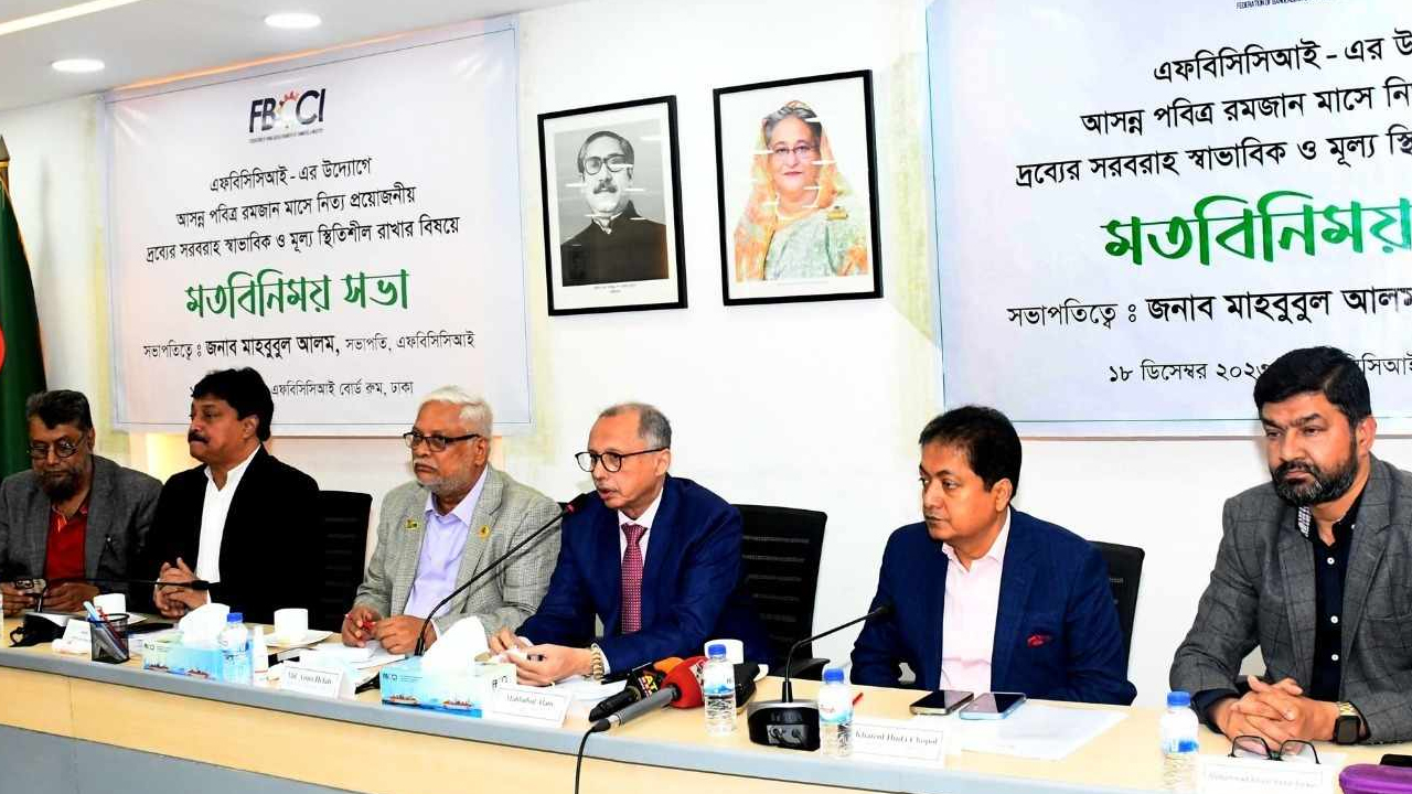 সোমবার (১৮ ডিসেম্বর) আসন্ন রমজানে নিত্যপণ্যের সরবরাহ স্বাভাবিক ও দাম স্থিতিশীল রাখার বিষয়ে আয়োজিত মতবিনিময় সভায় এফবিসিসিআই সভাপতি মাহবুবুল আলম এ আহ্বান জানান।