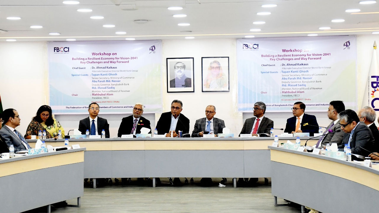 মঙ্গলবার (২ জানুয়ারি) এফবিসিসিআই কার্যালয়ে আয়োজিত ‘বিল্ডিং এ রেজিলিয়েন্ট ইকোনমি ফর ভিশন ২০৪১: কি চ্যালেঞ্জেস অ্যান্ড ওয়ে ফরওয়ার্ড’ শীর্ষক কর্মশালায় এফবিসিসিআই সভাপতি মাহবুবুল আলম এ কথা বলেন।
