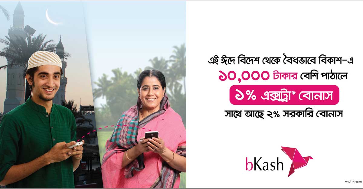 বিকাশে রেমিট্যান্স পাঠালেই মিলবে ৩ শতাংশ প্রণোদনা