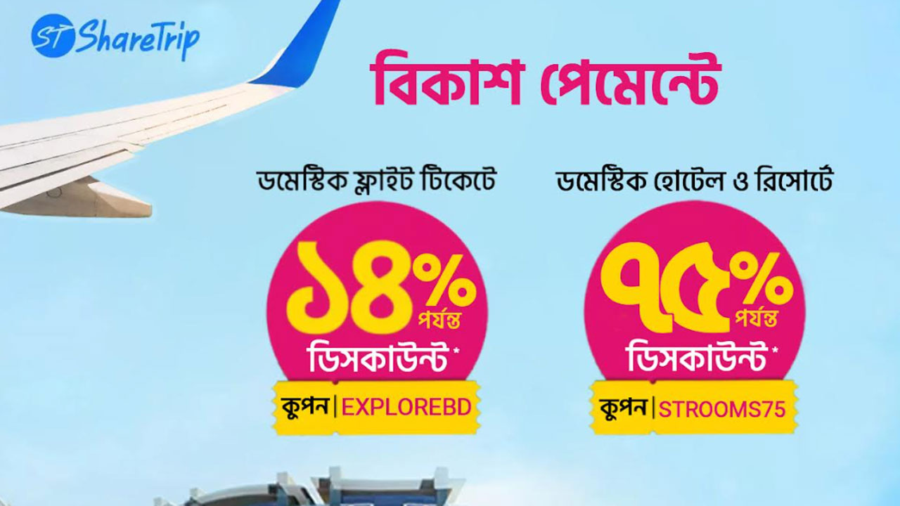 শেয়ার ট্রিপে টিকিট বুকিংয়ে বিকাশ পেমেন্টে আকর্ষণীয় ছাড়