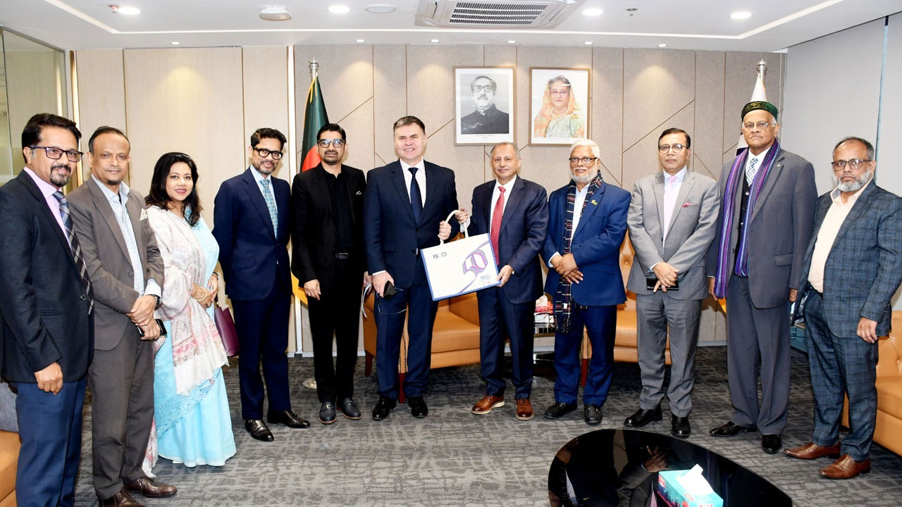 এতে বলা হয়, রাজধানীর গুলশানে এফবিসিসিআইয়ের কার্যালয়ে এই সৌজন্য সাক্ষাৎ অনুষ্ঠিত হয়। সাক্ষাতে বাংলাদেশের বিনিয়োগবান্ধব পরিবেশ এবং ব্যাপক অবকাঠামোগত উন্নয়নের চিত্র তুলে ধরেন এফবিসিসিআই সভাপতি মাহবুবুল আলম।