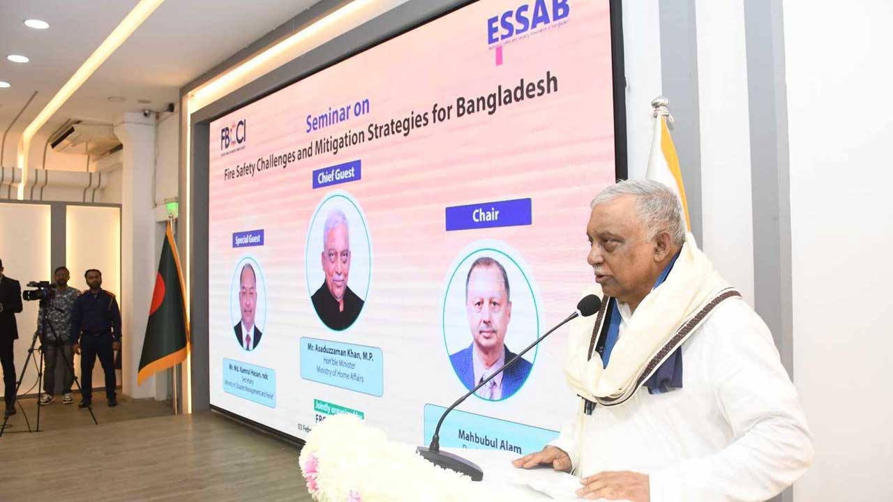 শনিবার (৩ ফেব্রুয়ারি) রাজধানীর মতিঝিলে এফবিসিসিআইয়ের কার্যালয়ে ‘ফায়ার সেফটি চ্যালেঞ্জ অ্যান্ড মিটিগেশন স্ট্র্যাটেজিস ফর বাংলাদেশ’ শীর্ষক সেমিনারে এ কথা বলেন স্বরাষ্ট্রমন্ত্রী।