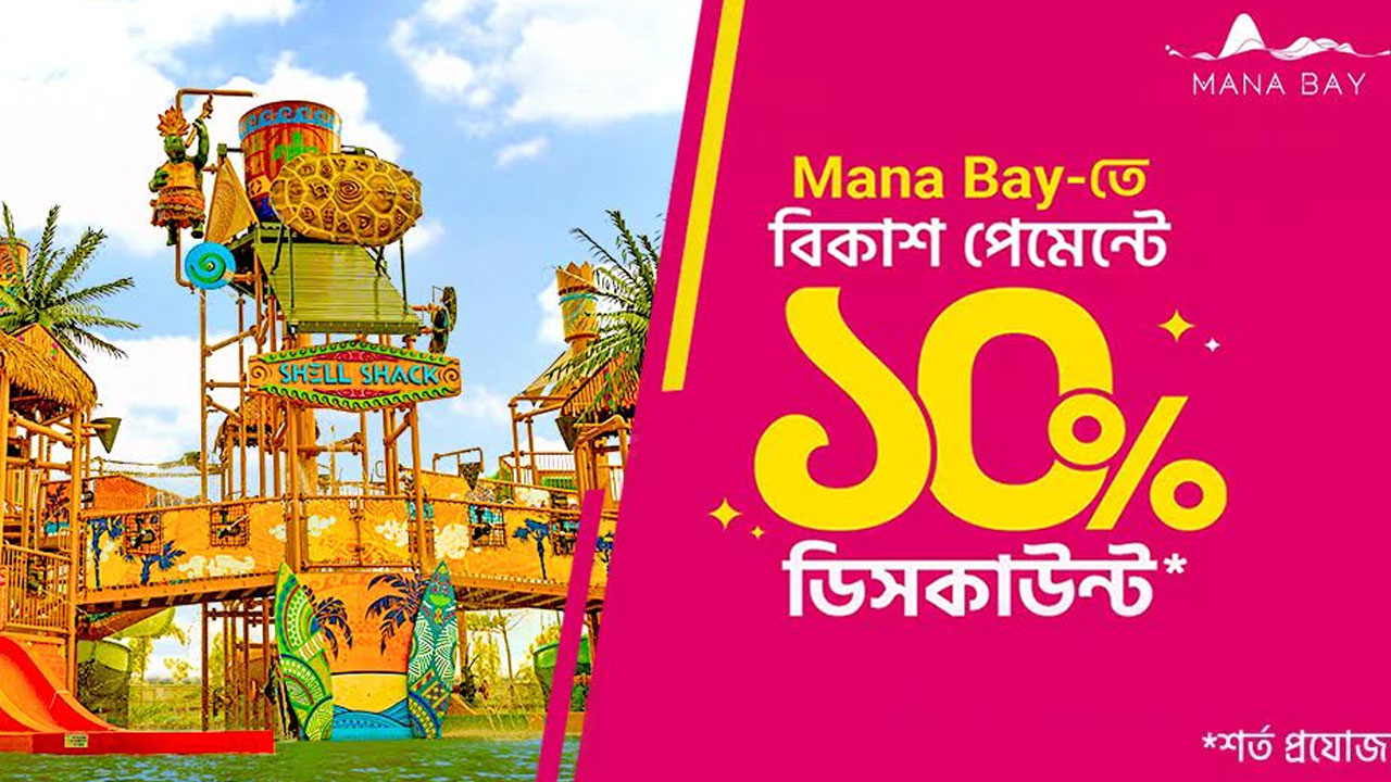 ওয়াটার পার্ক ‘মানা বে’-তে বিকাশ পেমেন্টে ১০ শতাংশ ছাড়